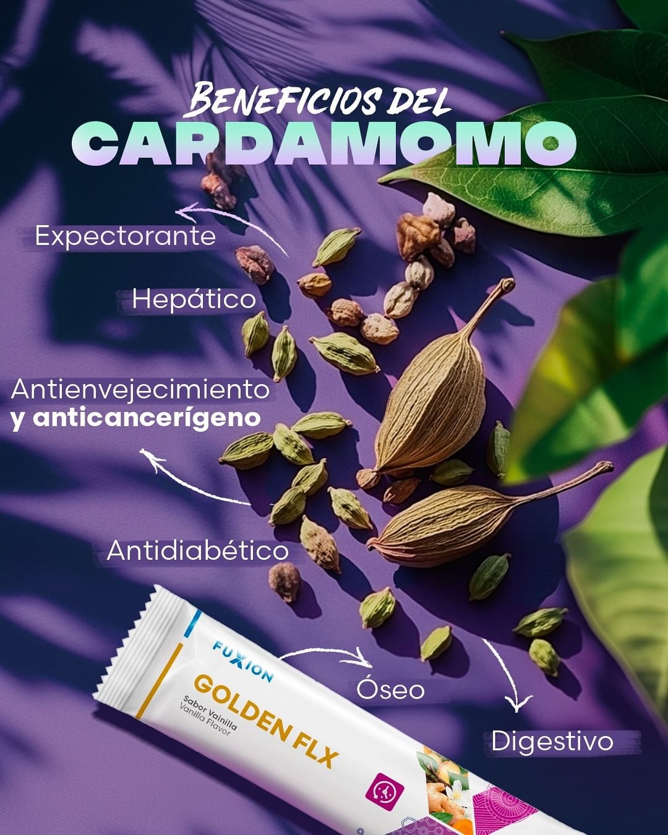 Golden FLX es una fórmula avanzada con cúrcuma, jengibre, cardamomo y vitamina D.