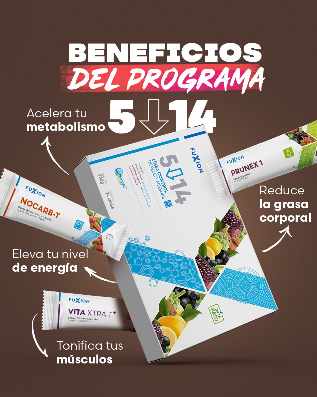 El Pack 5:14 combina varios productos clave para lograr resultados integrales en 14 días: limpieza, energía, control de peso y bienestar digestivo.